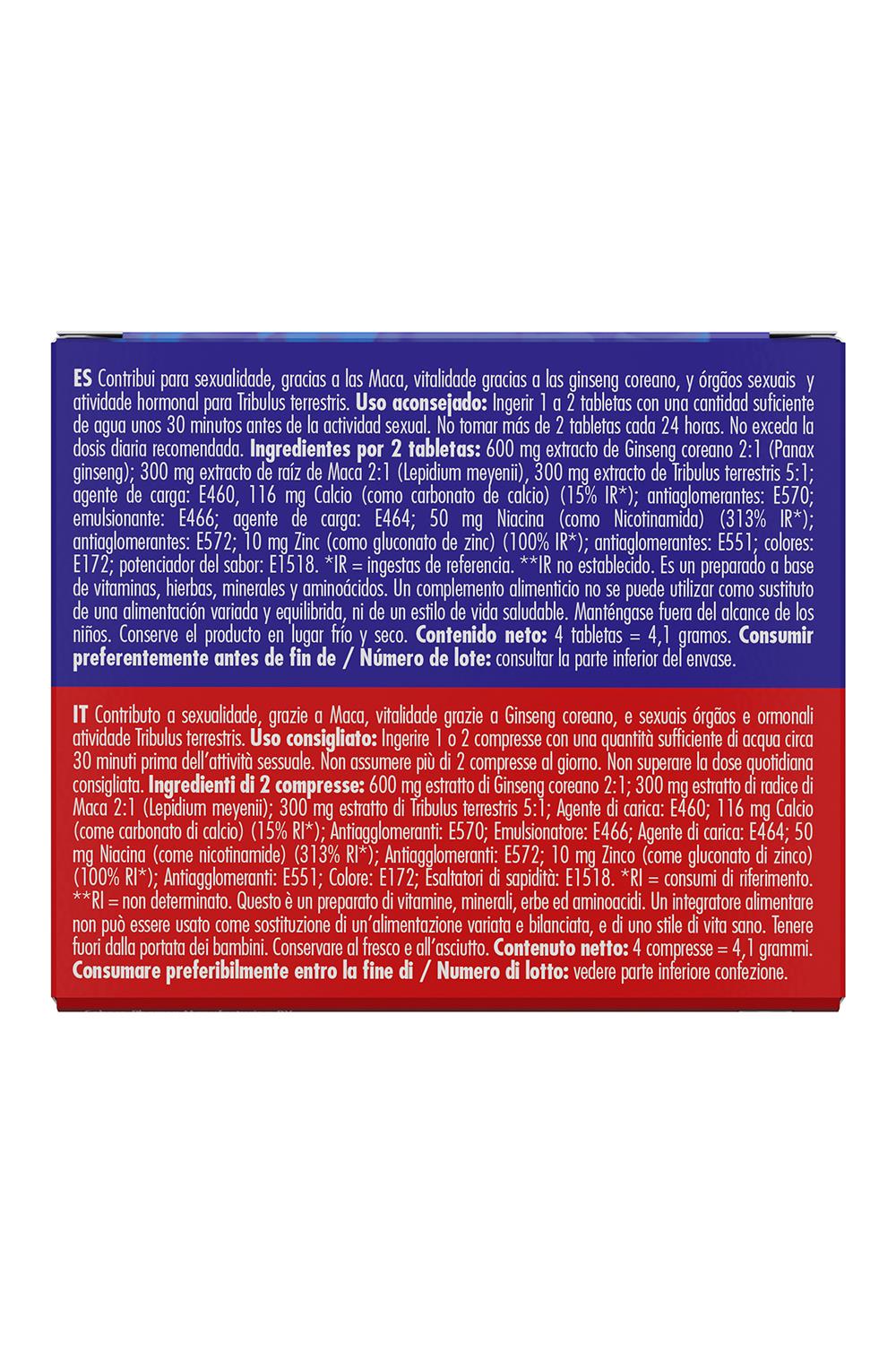 Niatsiin ja kaltsium aitavad kaasa normaalsele energiavahetusele. Niatsiin aitab ka vähendada väsimust ning toetab närvisüsteemi normaalset talitlust. Kaltsium aitab kaasa lihaste normaalsele tööle ja närviülekandele. Tsink aitab kaitsta keharakkude komponente oksüdatiivse stressi eest ning toetab normaalse testosteroonitaseme säilimist veres. Testosteroon mängib olulist rolli seksuaalses ihas ja võib avaldada positiivset mõju libiido suurenemisele. Tribulus terrestris aitab kaasa suguelundite heale talitlusele, toetades seksuaalset potentsi, ning toetab ka hormonaalset aktiivsust, sealhulgas testosterooni toimimist.